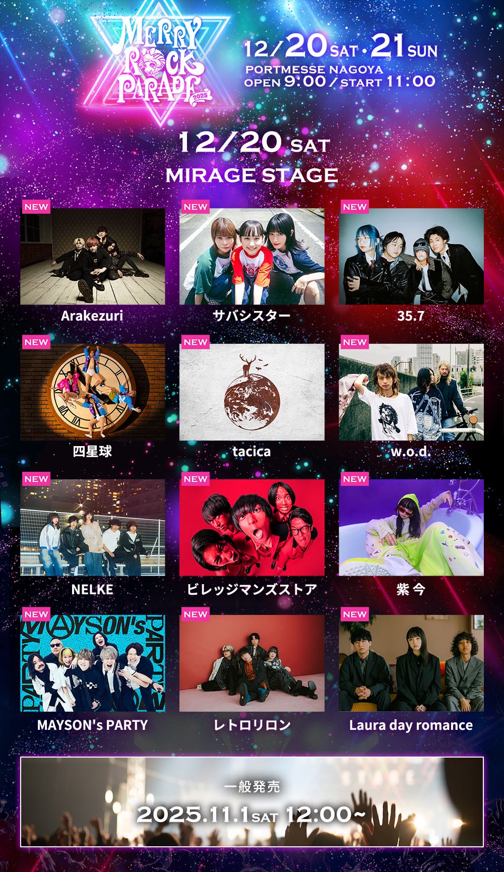 チケット一般発売:11/1(土)12:00★MIRAGE STAGEのみ入れるMIRAGE TICKETも同時発売開始!詳細