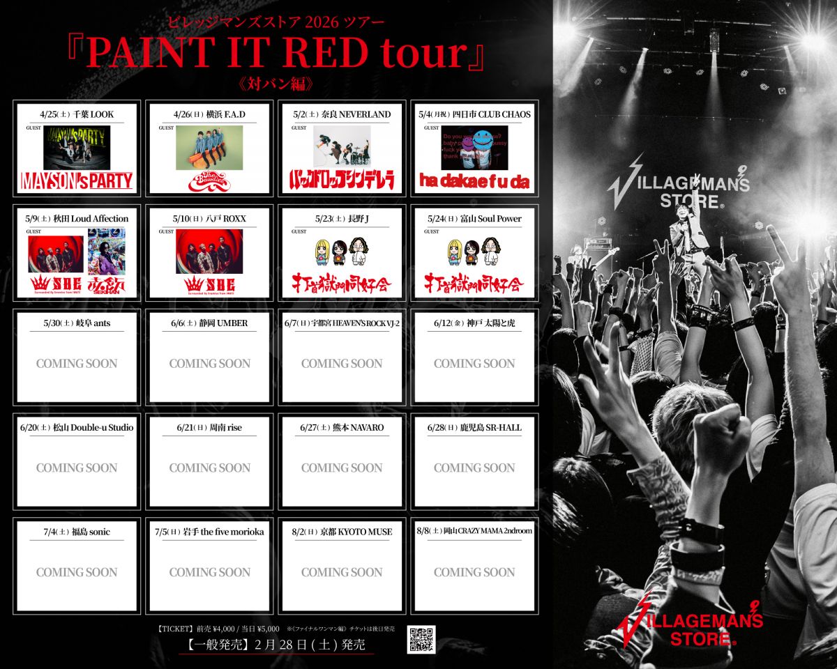 ビレッジマンズストア 2026ツアー「PAINT IT RED tour」の開催が決定しました!