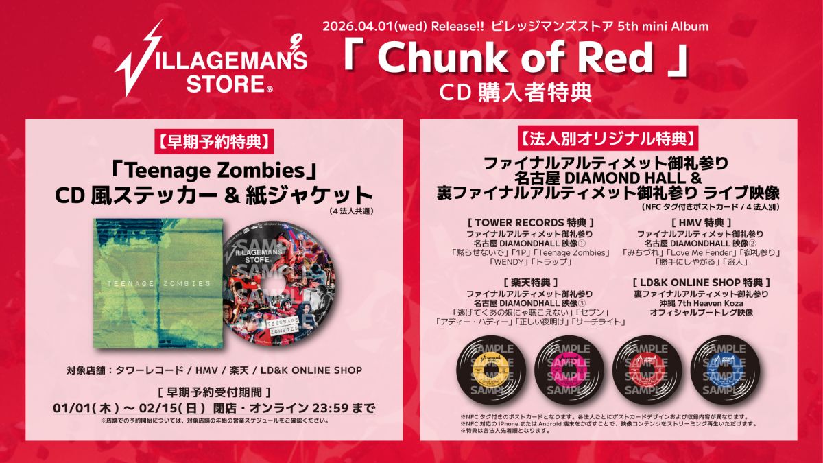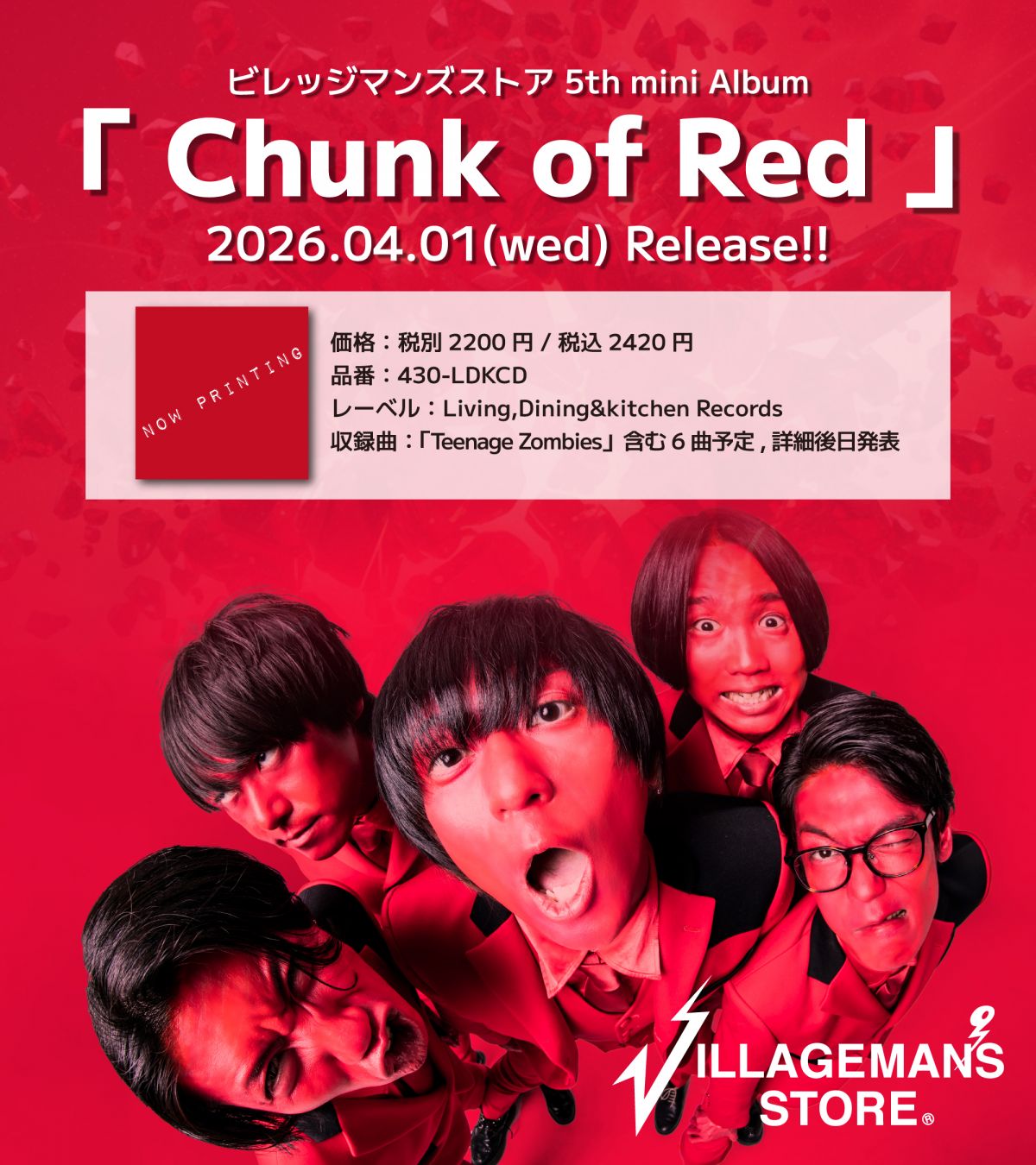 ビレッジマンズストア5th mini Album『Chunk of Red』のリリースが決定しました!